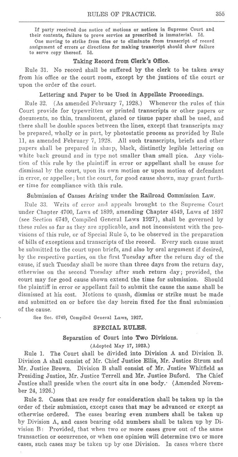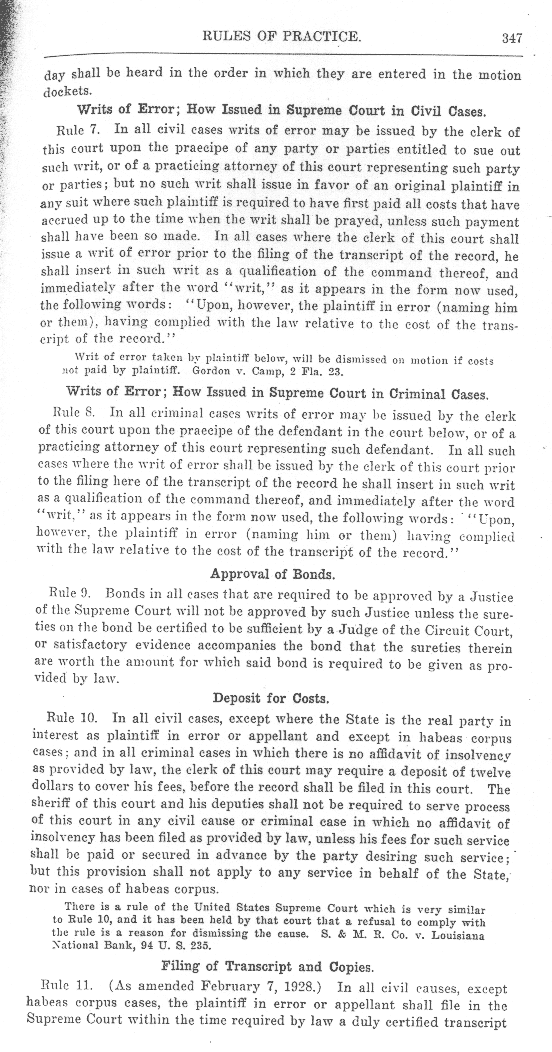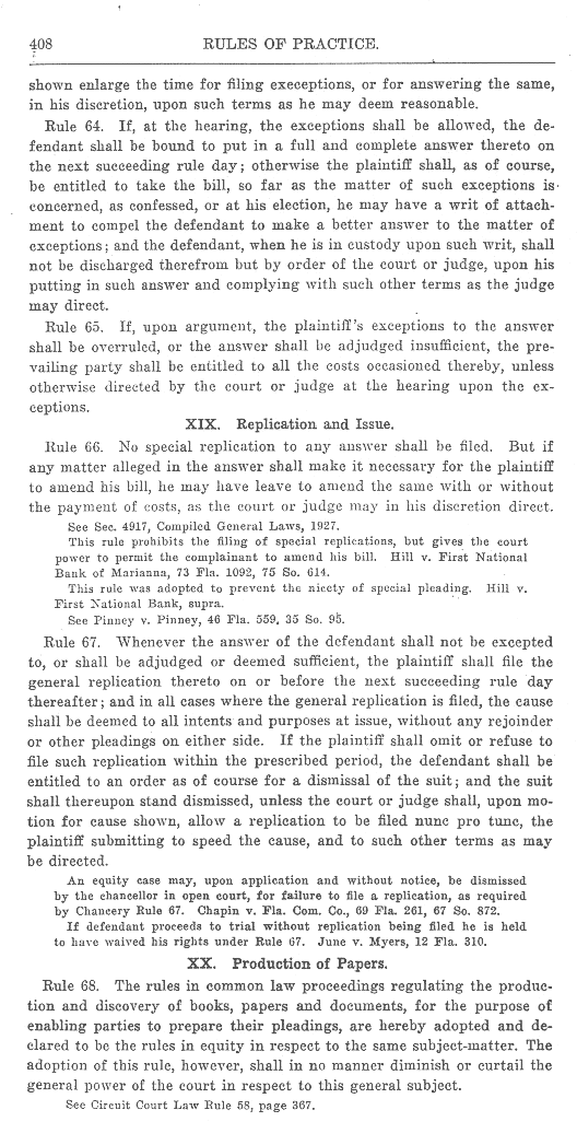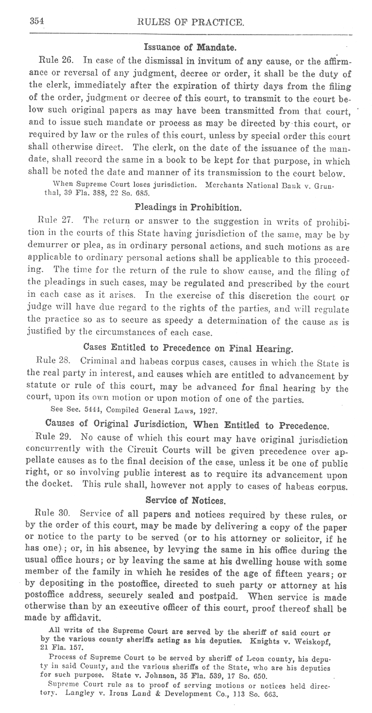See also Proclamation to 1927 volume, Index to Supreme Court Rules, 1927