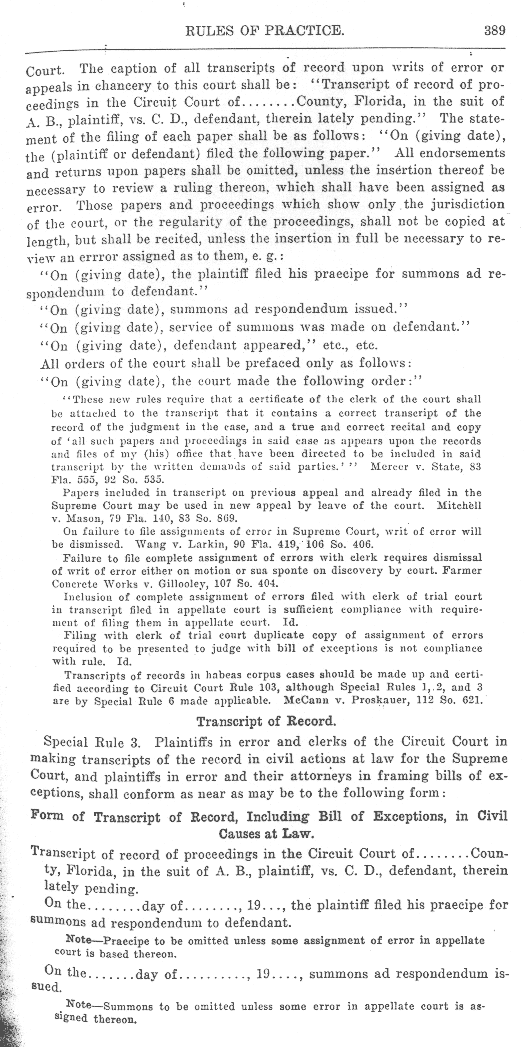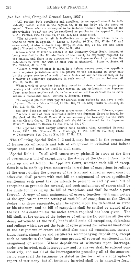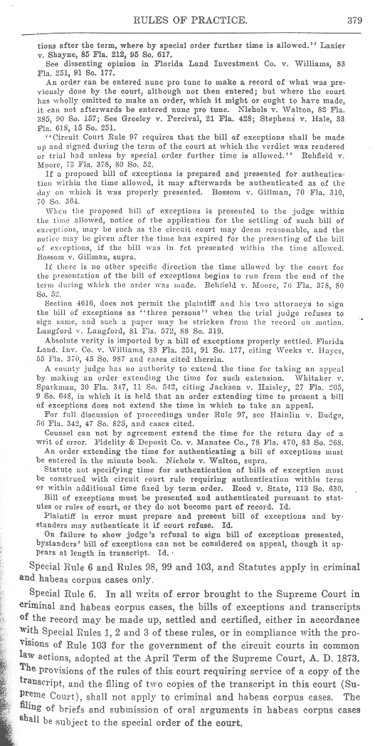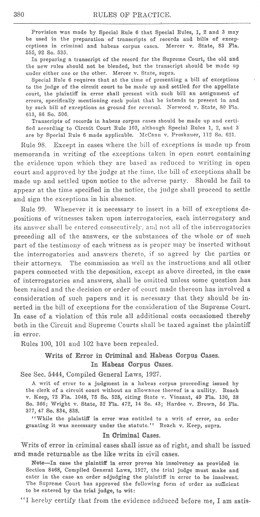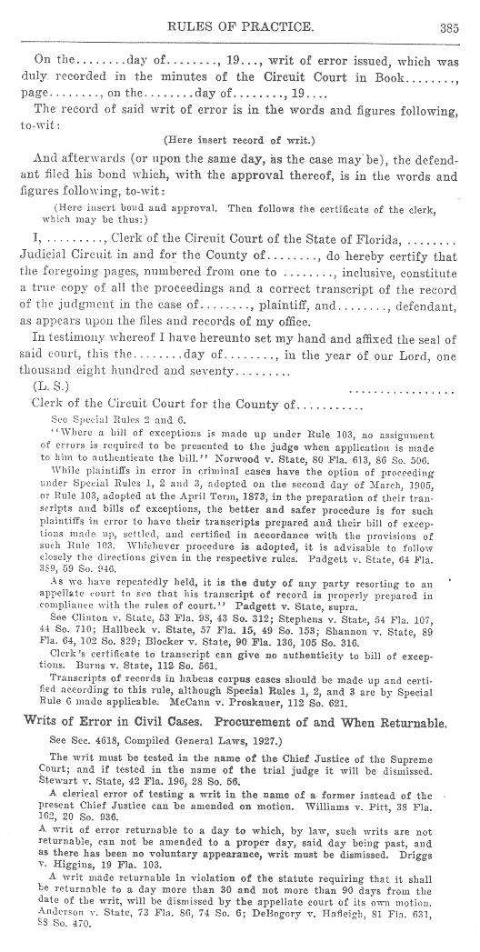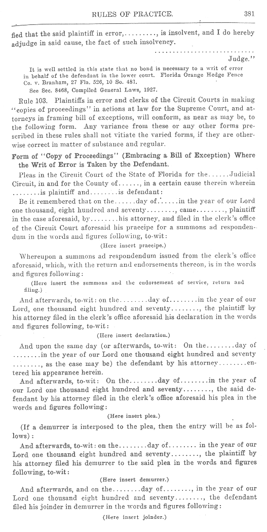 Page 381 - Writs of Error (continued), Rule 103